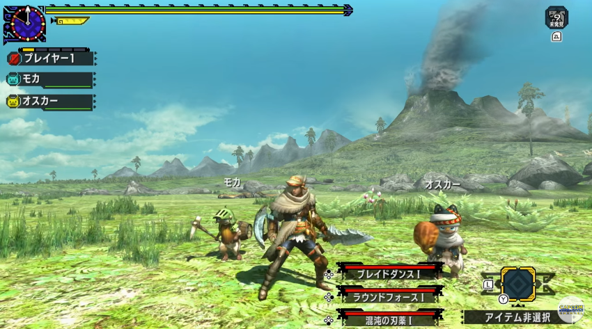 まず、スクリーンショットの画面下部にある狩技ゲージ。左に十字キーマークがついているので、十字キーでの発動は確定かと思います。