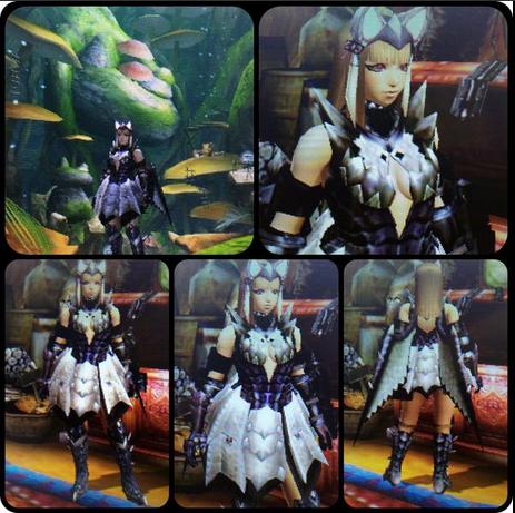 反逆王Jコイル等との相性の良さで人気の発掘エスカドラ胴ですが、ウカムルX腰、似合いますね~。ウカム腰は上位のミニスカ風の見た目からG級で少しゴツくなってしまいましたが、この組み合わせならシルエットもスタイリッシュで可愛いですね!